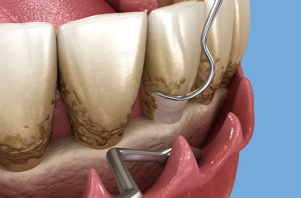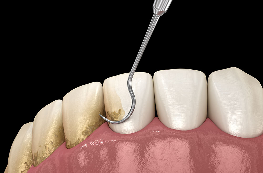 歯の表面や歯周ポケット内に付着した歯石を、スケーラーという器具を使って除去します。歯石は歯周病菌の温床となり、放置すると炎症が進行する原因になります。早い段階で歯石を取り除くことで、歯茎の腫れや出血の改善が期待でき、歯周病の進行を防ぐことにつながります。定期的に行うことで、お口の健康を維持しやすくなります。