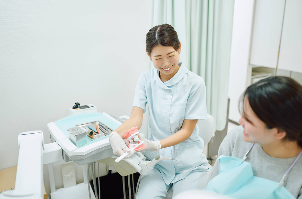 歯周病の主な原因であるプラーク(歯垢)を効果的に除去するには毎日の正しいブラッシングが大切です。患者さまのお口に合わせたセルフケア方法を丁寧に指導し、歯周病の改善と再発予防をサポートします。