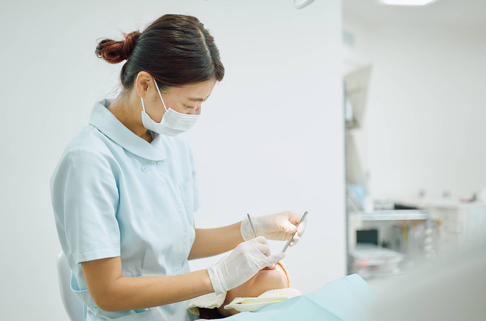 当院では、皆さまが無理なく通い続けられるよう、痛みを最小限に抑えた優しい歯周病治療を心がけています。機械特有のキーンという振動が苦手な方には、手作業で一本一本丁寧に汚れを取り除いていくほか、ご希望に応じて麻酔を使用することも可能です。